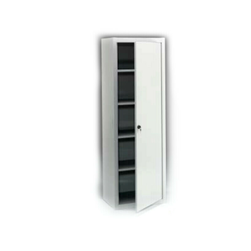 Verniciatura reticolata in forno continuo a 160/180°. Doppia anta. Completo di ripiani interni, serratura, fermi ante ed arresto battente.